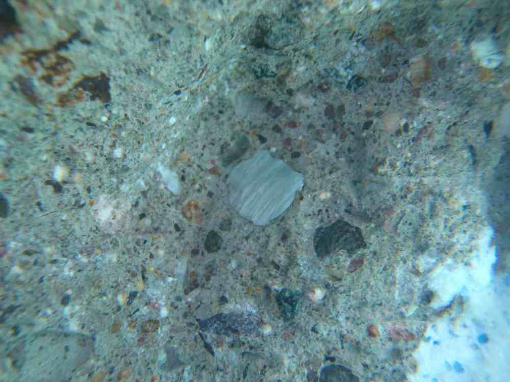 Here is a golf ball sized rebar rust stain on the bench back of this Ultra-Poz Sapphire finished pool. These can be a bit more difficult to repair than rebar rust stains on the floor or wall of a pool. Most of these involve patching flat and curved surfaces at the same time. I got a little bit lucky on this one as it didn’t roll too far into the seat area, but I still had a inside curve to deal with. Inside and outside rounded edge repair on Ultra-Poz, 3M Quartz or Pebble are tricky at best. Photos one through six are start to finish of the repair. In the second picture you will notice intense rust on one end of the rebar and clean non-rusted steel on the bottom right edge of this picture. This was what I call a dead end rebar, only one end is connected to more rebar, the other end should have had an overlapping piece tied over it. The third picture shows the cut and removed rebar to the side of the repair area. The forth picture is where I cut the rebar clean and flush with the shotcrete, the shiny silver spot in the center is the cut rebar, notice there is no visible rust on the cut end of the embedded rebar or the removed piece in the fifth picture. I always inspect the bottom of the removed piece of steel to ensure I removed all of the rusted rebar, if it is rusted on the bottom I continue exposing and cutting until I find clean steel. It is the only way to ensure that it wont come back, after all, I guarantee my work. The final picture is the finished patch.