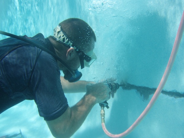 Here I am digging out a large piece of rusted rebar or rebar rust stain. The stain itself was only about the size of a golf ball. The size of the stain or spot is never an indicator of how big the repair, patch, will be.
