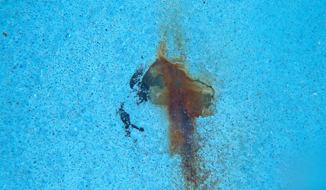 Do you have rusty stains in your concrete pool? It’s likely coming from the steel reinforcing bar, often called the rebar, that is inches below the surface of the concrete. As time goes by and the bar gets rusty, the rust can leach out onto the concrete, causing an unsightly underwater rust stain.